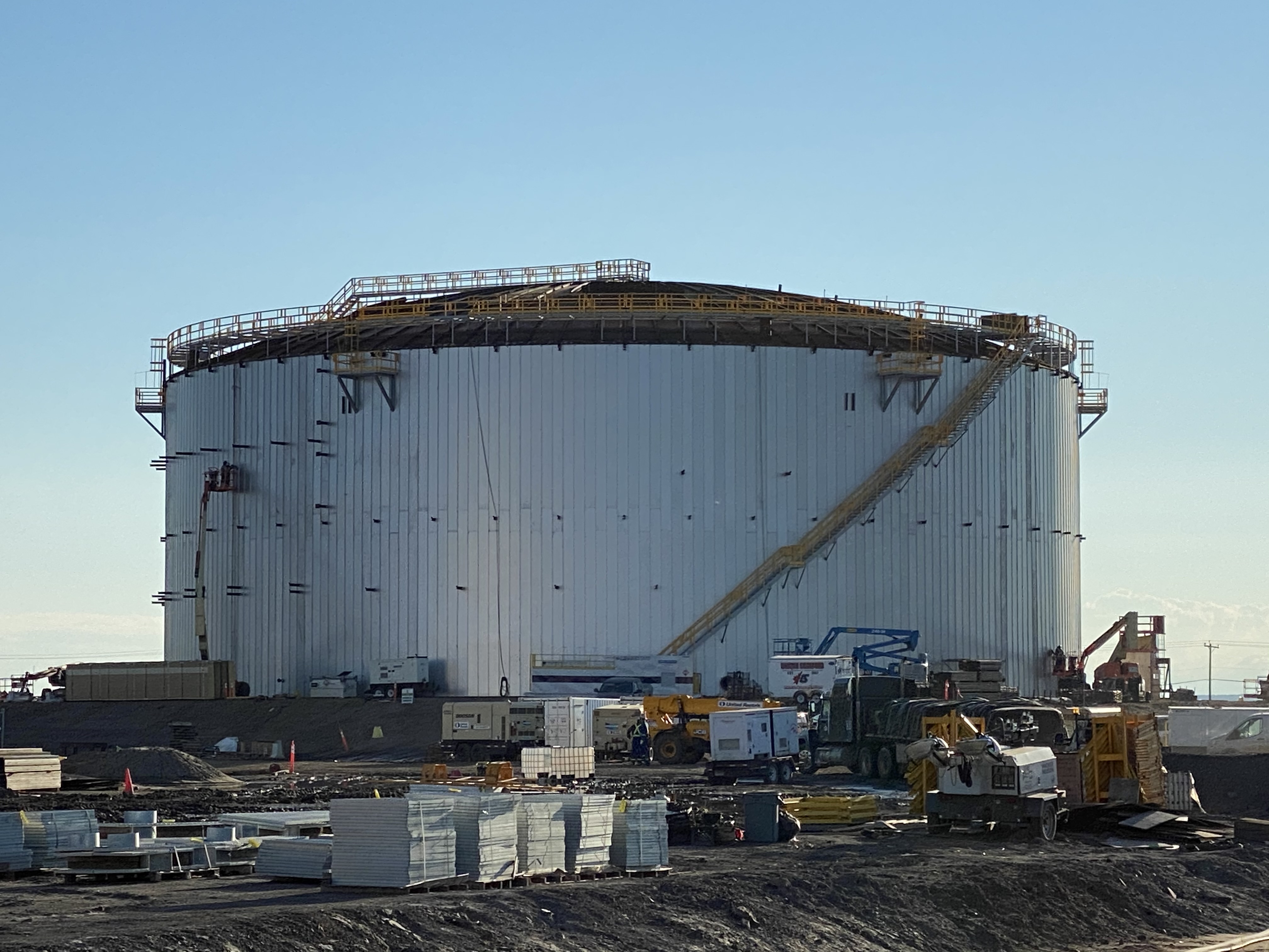 From June to October 2020, Tetrad insulated 3 storage tanks for Primoris Canada at the CNRL Horizon facility for their tank farm expansion. The project included a tank of 170X59, 197X66 and a 190X66 that had an external framed dome roof. The project included a total of 198,000 SF of insulation and cladding on a very tight timeline.