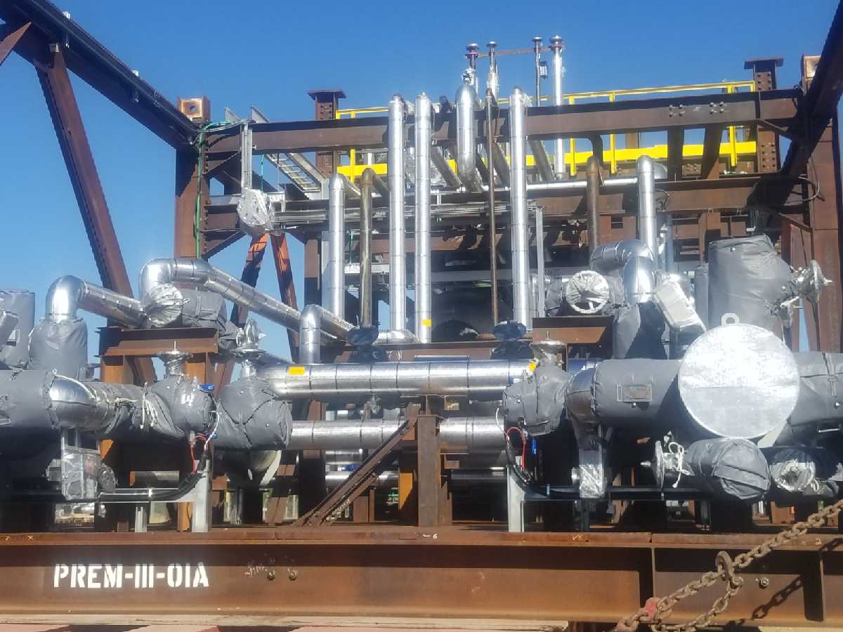 Our involvement on the project included assuming the work from another contractor to complete insulating and glycol tracing for 23 modules. Overall, we completed 7,700 LM of tracing and 5,700 LM of insulation amid project delays and mod yard relocations, compressing the shipment timeline for the modules. At peak man hours, we had 47 craft onsite, working a total of 18,000 hours over 95 days.