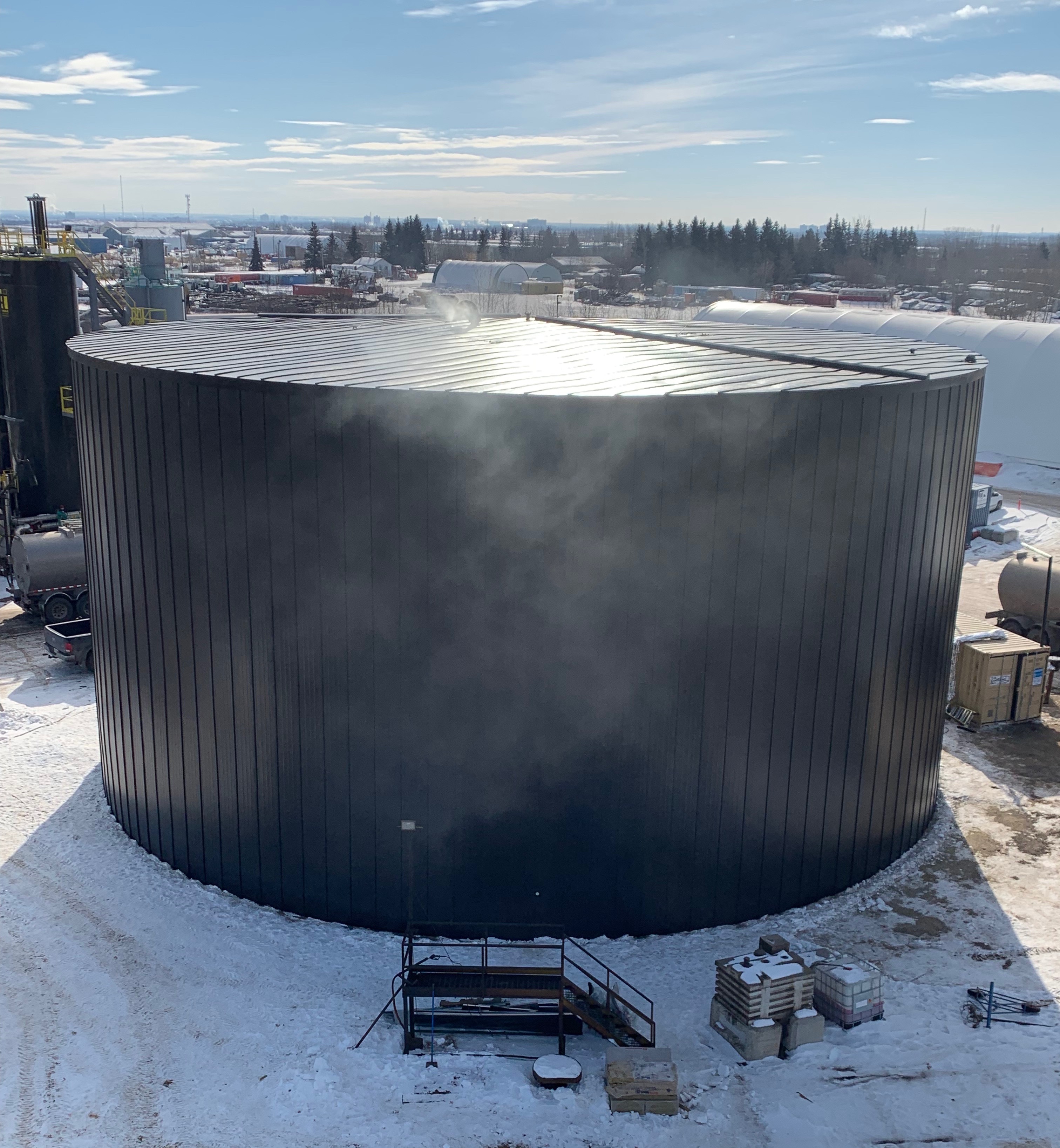 Our tank systems can be designed using mineral wool, calcium silicate, cellular glass, polyisocyanurate, pyrogel, fiberglass or perlite insulation and finished with aluminum, stainless steel or galvalume, in a variety of colour and finish options. Our tank systems can be designed and installed on traditional storage tanks, cold service and thermal energy storage tanks, coke drums, precipitators, spheres, vessels, reactors, and specialty applications.